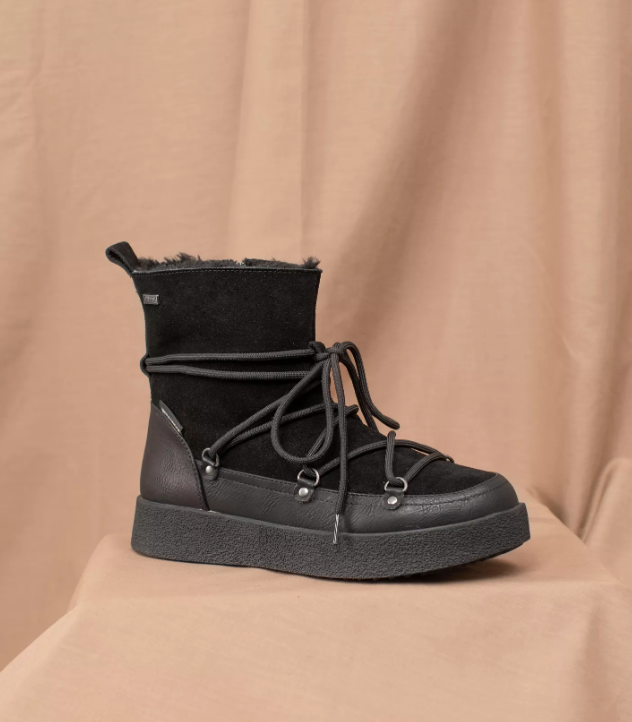 Oppdater tilgjengelighetVarmfôrede støvler med gummisåle. Overdelen er i semsket skinn og har en fin dekorativ snøring. Glidelås på innsiden for enkel av og på. Støvlene er vanntette.