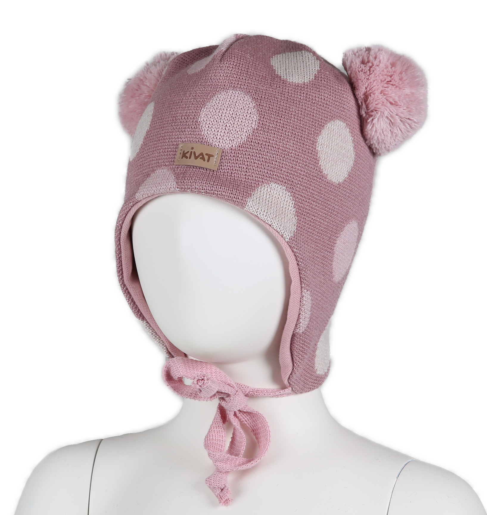 HAT WITH BIG DOTS,TIE ONS,WINDPROOF PINK