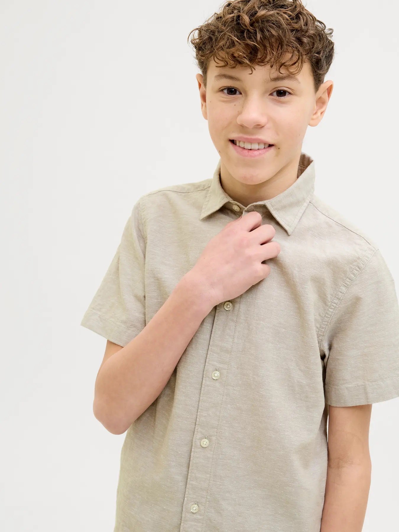 JJBREEZE LINEN BLEND SHIRT JNR CROCKERY