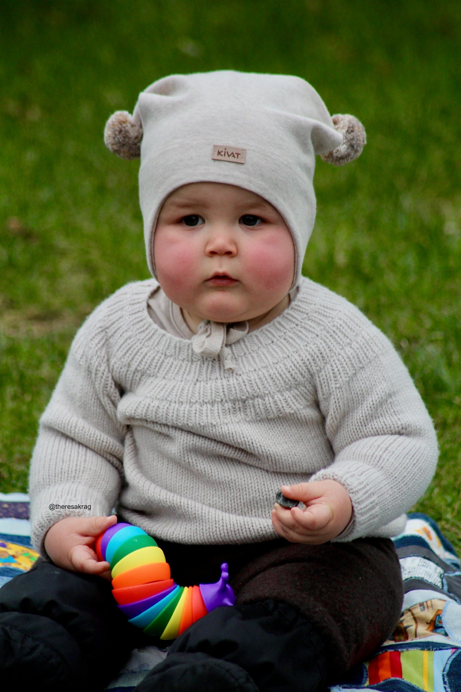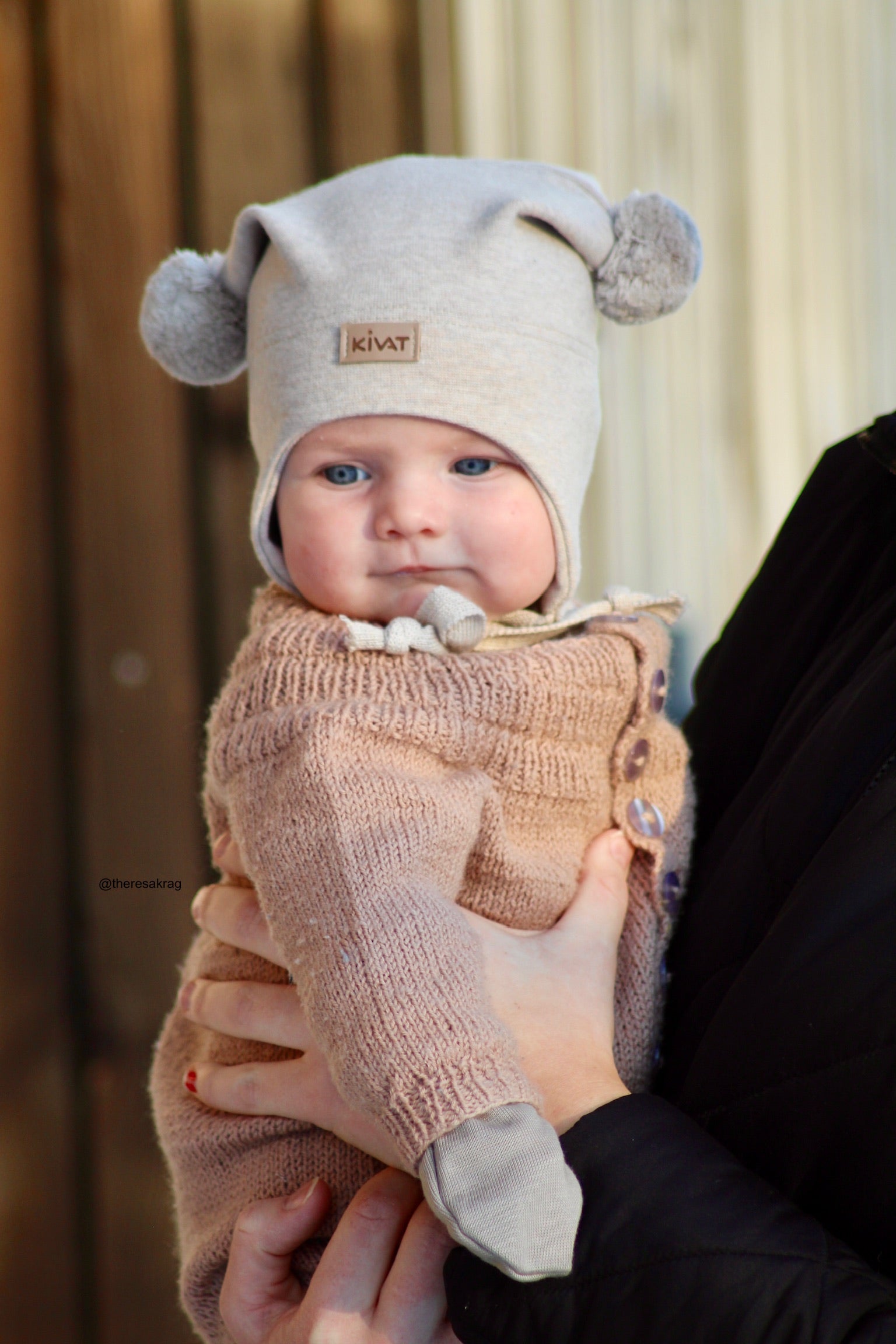 KNYTELUE BOMULL BEIGE M/LOGO