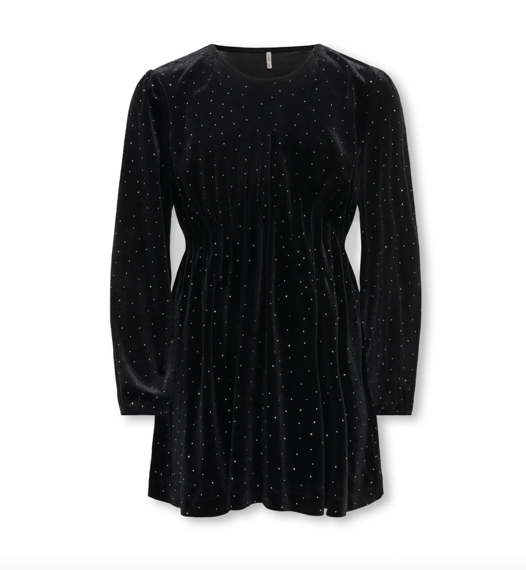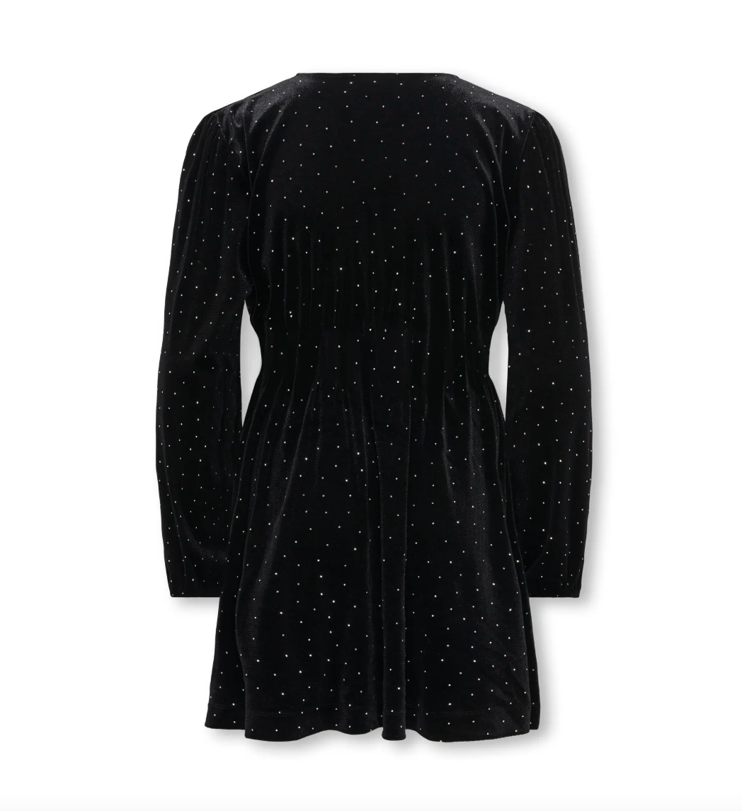 KOGVELLA L/S O-NECK VELVET DRESS JRS BLACK/STUDS