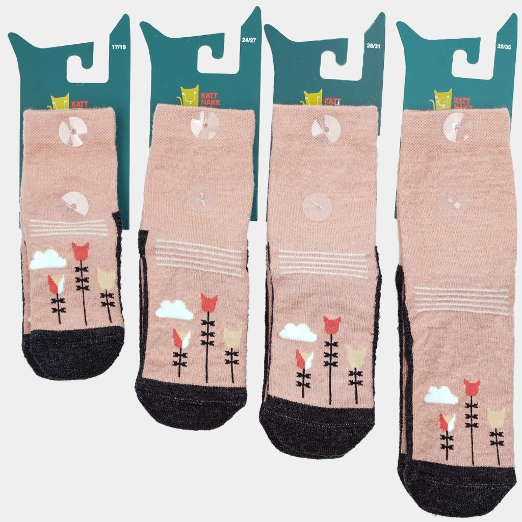 Oppdater tilgjengelighetUllsokkar til born med forsterka fotsole og antigli. Finst i storleik 17-27. Dei varmer godt og eignar seg ypperleg på glatte barnehage-og skulegolv.