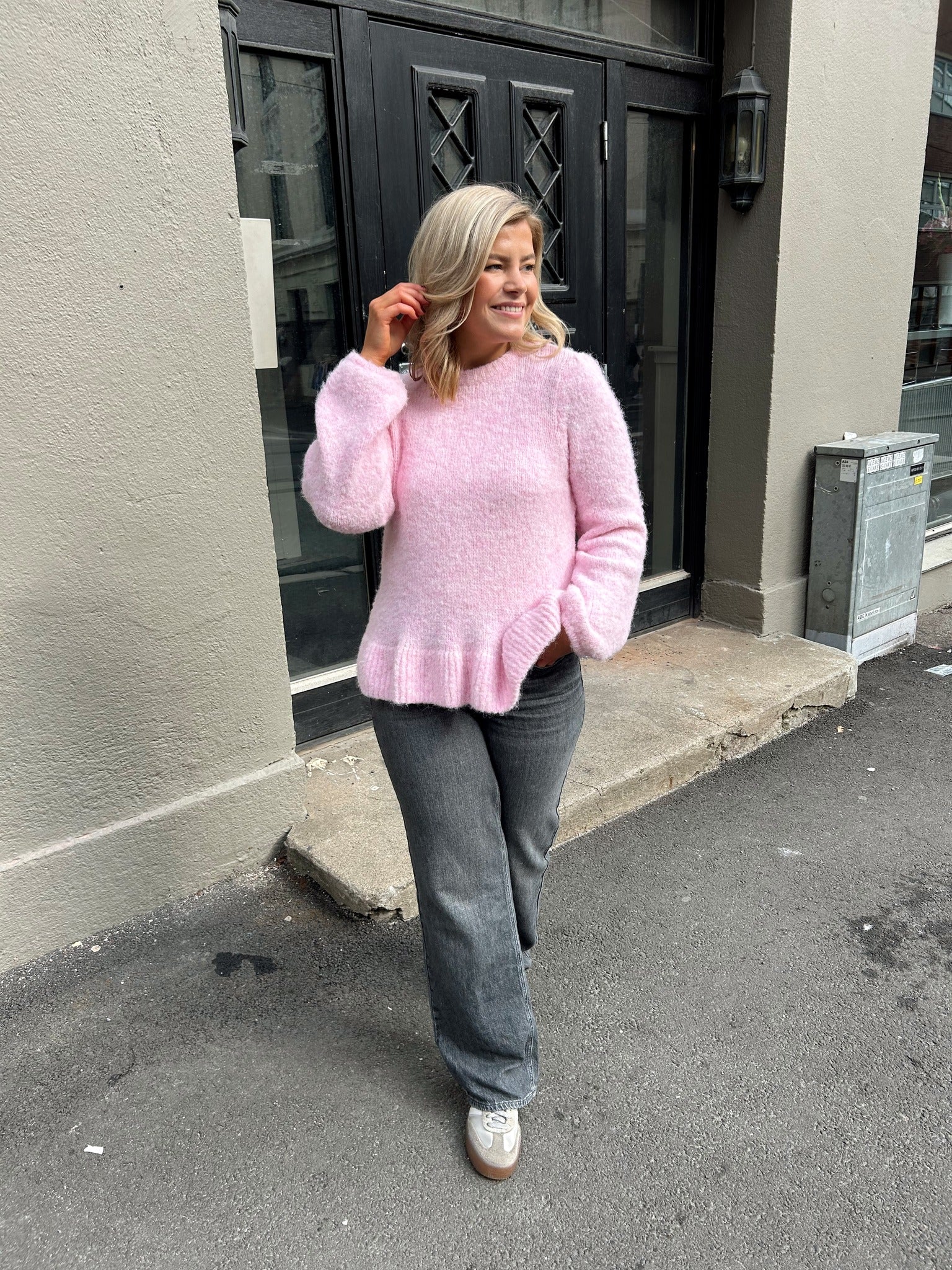 VIBOWS L/S O-NECK KNIT PULLOVER - CHERRY BLOSSOM