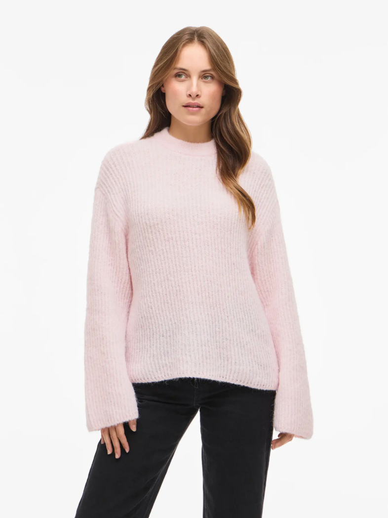 VIELLIS O-NECK L/S KNIT PULLOVER - CHERRY BLOSSOM