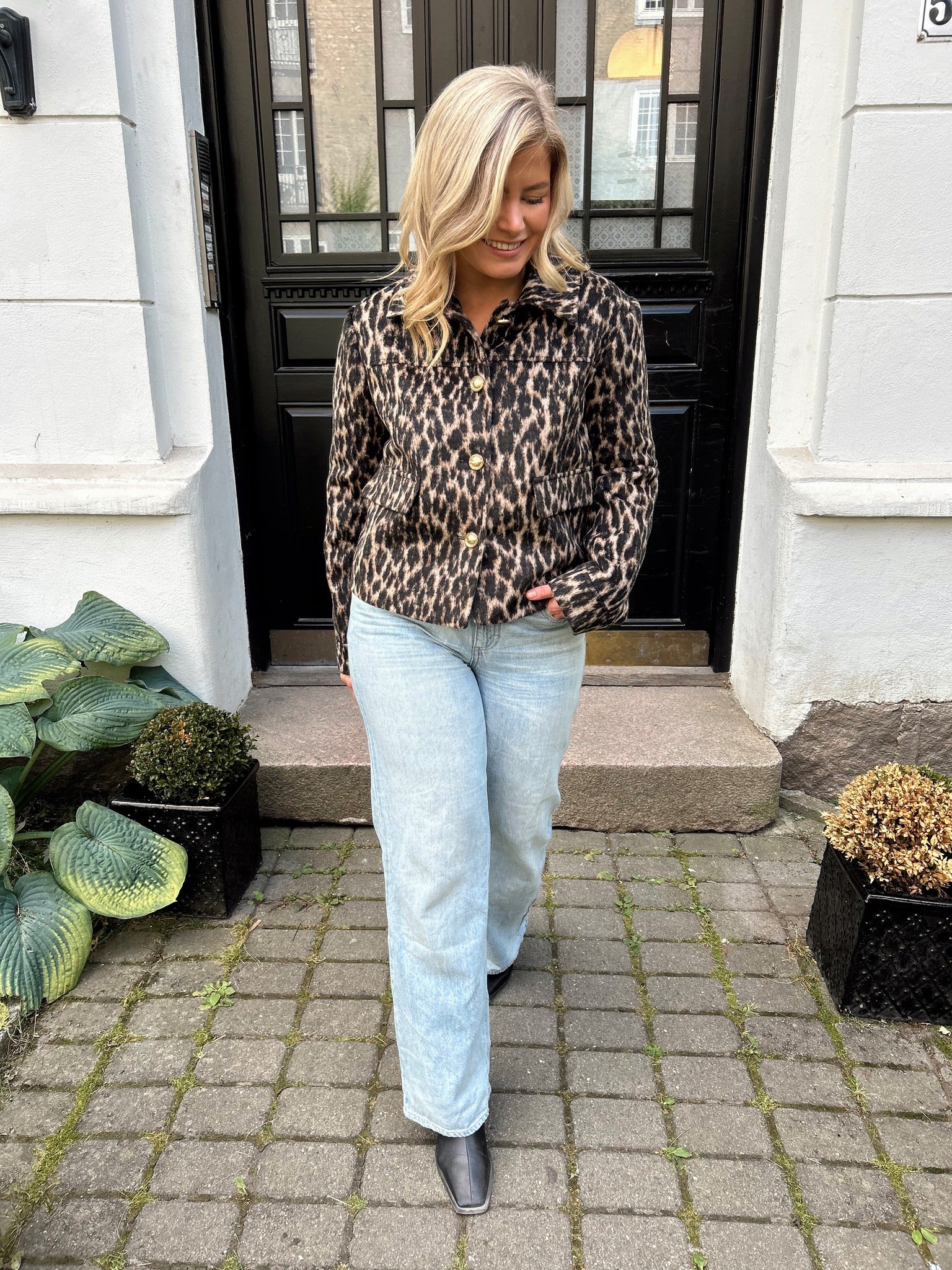 VISIMBA L/S SHORT JACKET - BLACK BEAUTY/LEOPARD