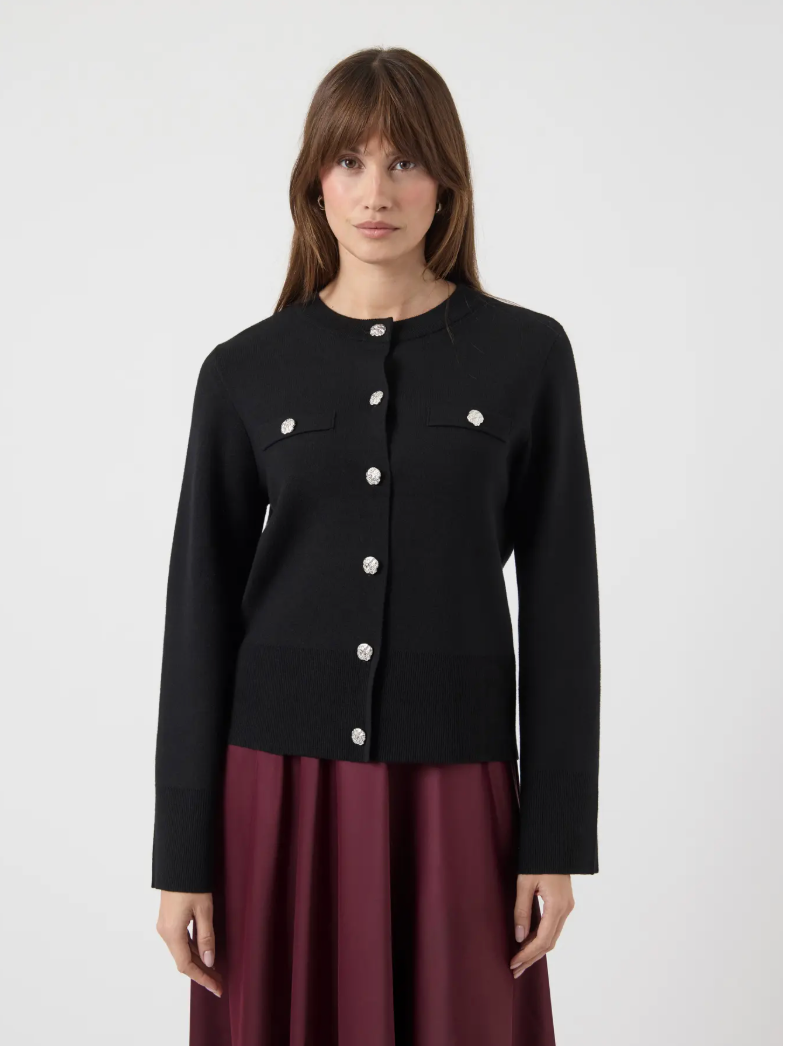 YASPIMI LS KNIT CARDIGAN - BLACK